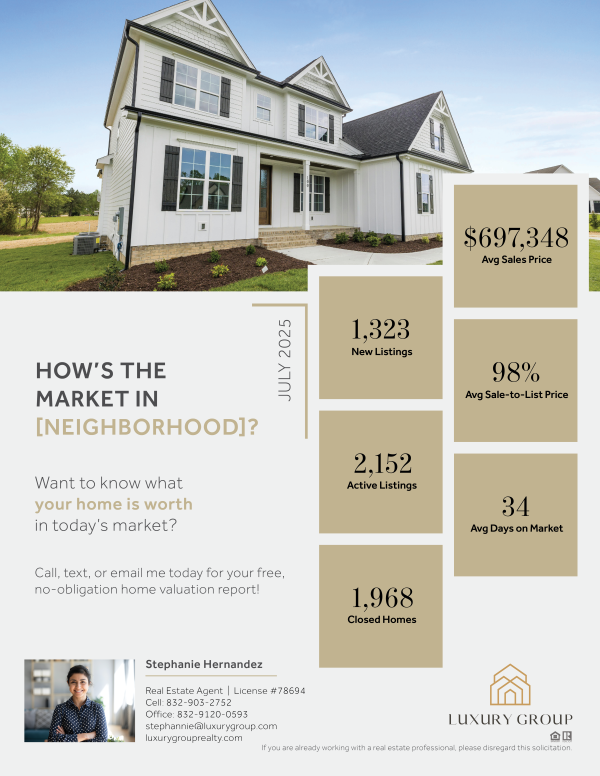 Increase prospecting with our Market Snapshot Flyer, exclusively designed for real estate agents and fully customizable. Provide valuable market insights to clients, demonstrating your commitment to helping them make informed decisions in today's dynamic housing market.