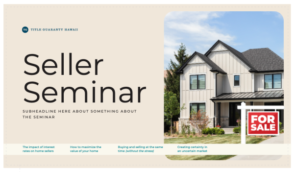 Engage potential home sellers and establish your expertise with this customizable seller seminar presentation template, designed to educate and empower your audience.